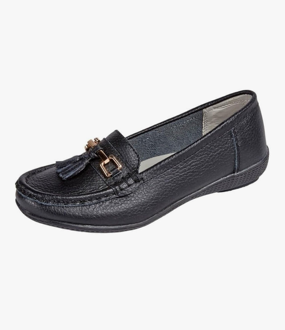 Jo & Joe Ladies Real Leather Soft Loafers Navy Dark Blue